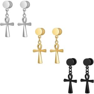 【並行輸入品】Rofusn アンククロスイヤリング メンズ レディース ステンレススチール エジプトシンボル アンククロス スタッドピアス ダングルヒ