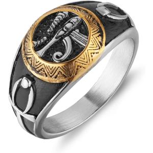 【並行輸入品】HZMAN 古代エジプトリング メンズ レディース ステンレススチール アンククロス ホルスの目 エジプト シンボルリング ジュエリー