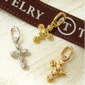 K18 クロス ペンダント トップ 18金 十字架 ジュエリー きらきら イエロー ピンク ホワイト DD-1117 高見え 上品 ミラーカットボール ギフト