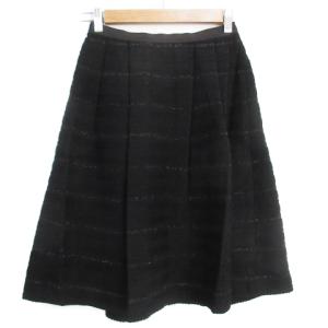 アンケート en quete フレアスカート ミモレ丈 ウール ラメ ボーダー柄 7 黒 ブラック /FF34 レディース