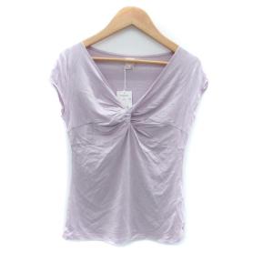 未使用品 アンケート en quete カットソー Vネック 半袖 9 M 紫 パープル /HO32 レディース