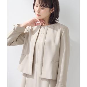 セレモニースーツ スーツ 「定番スーツ/UVケア/洗える」ウール調ノーカラージャケット レディース