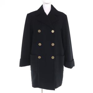 極美品△YVES SAINT LAURENT イヴ・サンローラン ヴィンテージ HWA79-274 ウール100% YSLボタン 中綿 ピーコート ブラック 34 レディース