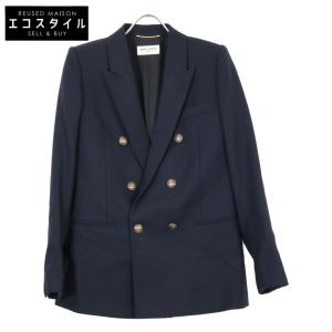 Yves Saint-Laurent イヴサンローラン 19年製 ネイビー ピークドラペル ダブルテーラードジャケット ブラック 38 ジャケット ウール メンズ 中古