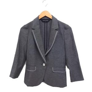 エスプリミュール ESPRITMUR テーラードジャケット シングル 7分袖 配色ライン 麻混 9 チャコールグレー /FT6 レディース