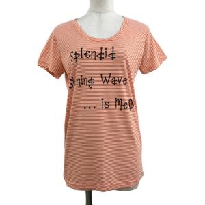 エスプリドール ESPRIT D'OR カットソー Tシャツ プルオーバー Uネック ボーダー ロゴ ラインストーン 半袖 9 白 オレンジ ホワイト