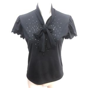 エスプリミュール ESPRITMUR カットソー ボウタイ ラインストーン フリル 半袖 L 黒 ブラック /AU レディース