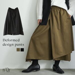 ガウチョパンツ ミモレ丈 レディース ボトムス ラップパンツ ワイド アシンメトリー レイヤード風 個性的 変形 体型カバー 秋 冬 春「メール便不可」「20」