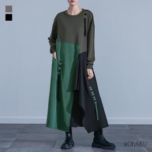ワンピース 長袖 レディース ドレス ロング丈 アシンメトリー アシメ 配色 切替 裏毛 裏地 起毛 あったか 送料無料 「メール便不可」「40」