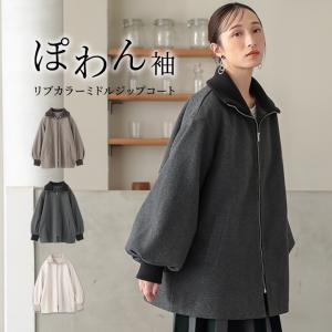 コート レディース アウター ブルゾン ジャケット 羽織り ボリューム袖 リブカラー スタンドネック 秋 冬 オシャレウォーカー「メール便不可」「50」