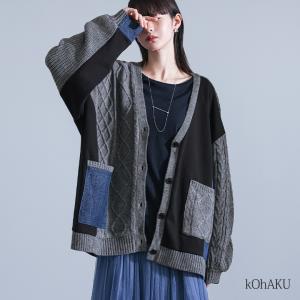 カーディガン 長袖 レディース トップス ニットカーディガン 羽織 セーター 裏毛 デニム 異素材 レイヤード 重ね着 秋 冬 返品交換不可 「メール便不可」「40」