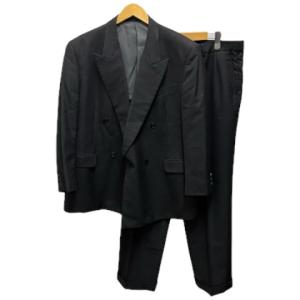 ダンヒル dunhill スーツ セットアップ ジャケット パンツ ダブル フォーマル ポリエステル 無地 黒 ブラック メンズ