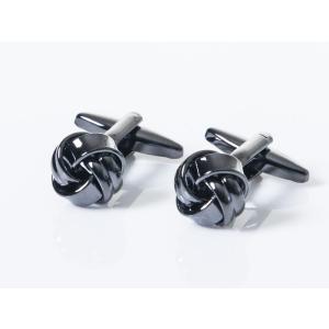 メンズファッション 正装 スーツ シンプル カフスボタン カフリンクス#ブラック結び