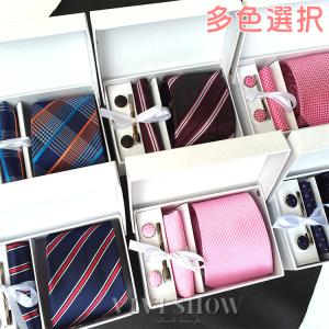 ネクタイセット メンズ ネクタイ ポケットチーフ ネクタイピン カフスボタン セット チェック柄 ドット柄 プレゼント きれいめ おしゃれ