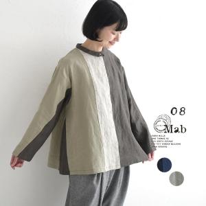 シャツ ブラウス 長袖 レディース 08Mab 9番手リネン チビ襟 配色切り替え 麻100% 25AW1003,