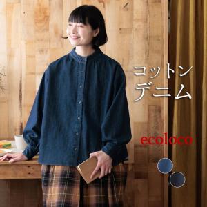 デニムブラウス 長袖 レディース コットン ハイネック 肩落ち シャツ 綿100% 25AW0829,