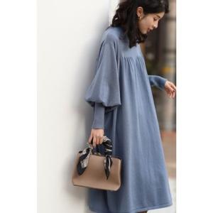 カワイイ CAWAII ゆったりポワン袖 ニットワンピース (ブルー)