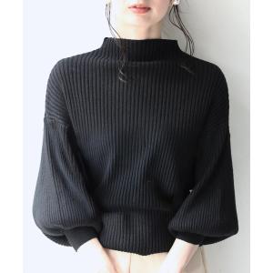 ニット セーター 袖ポワンとオフネックのきれいめリブニットトップス レディース
