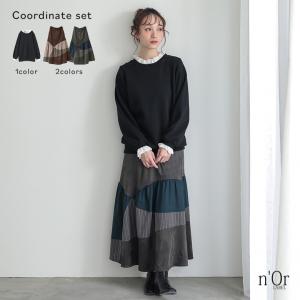 2点コーデセット 2025 レディース スウェット 裏起毛 トップス 長袖 トレーナー スカート ボトムス ロングスカート 異素材「送料無料」「メール便不可」「40」