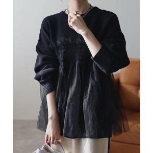 ニット セーター 新色追加「着映えトップス」アルパカタッチ チュールドッキングプルオーバー/ペプラムニット レディース