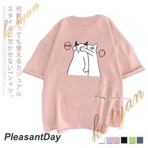 Tシャツ 半袖 レディース 夏Tシャツ ゆったり トップス カットソー 夏物 猫柄 シンプル 夏作 カジュアル