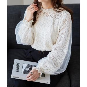 ブラウス シャツ チュールドッキングフラワーレースキャンディースリーブブラウス レディース
