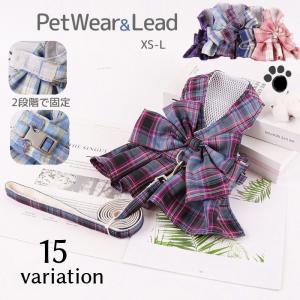 ペットウェア ドッグウェア 犬服 犬用ワンピース リード 2点セット ワンタッチバックル メッシュ フレアスカート 通気性 学生服風 かわいい キュー