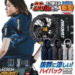 (2025年新型24V) 24V バートル セット ハイバック ベスト バッテリー ファン付 作業服 春夏 空調 エアクラ (AC2034+AC09+AC09-1) (即日出荷) bt-ac2034-l