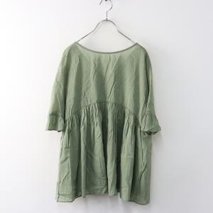 【期間限定価格】美品 2025SS スタジオクリップ studio CLIP Vネックギャザーブラウス F\グリーン 半袖 フレア シャツ 羽織り【2400014596137】