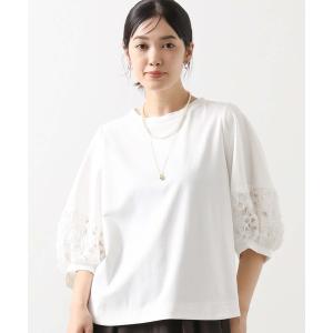 tシャツ 袖3Dレースパフ5分袖カットソー レディース