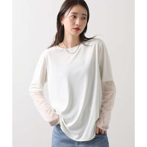 tシャツ 裾シアーラウンド7分袖カットソー レディース