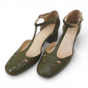 コントワーデコトニエ COMPTOIR DES COTONNIERS パンプス カットワーク サイドオープン 38 カーキ レザー ポルトガル製 レディース