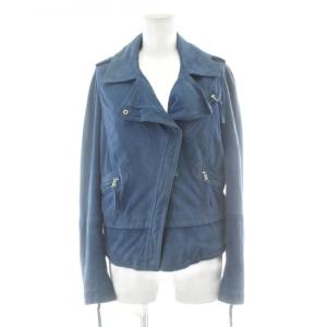 コントワーデコトニエ COMPTOIR DES COTONNIERS ライダースジャケット 革ジャン やぎ革 レザー S 青 ブルー ダブル ショート丈