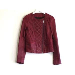<レアカラー> COMPTOIR DES COTONNIERS コントワー デ コトニエ ラムレザー ノーカラー キルティング ライダースジャケット ・S ボルドー