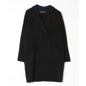 美品 COMPTOIR DES COTONNIERS コントワーデコトニエ ウール カシミヤブレンド ノーカラー ロングコート 5/7号 ブラック レディース 古着 中古