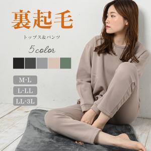 部屋着 セットアップ 裏起毛 ラウンドトップス&テーパードパンツ 上下セット ルームウエア 秋冬新作 暖かい 可愛い オシャレ