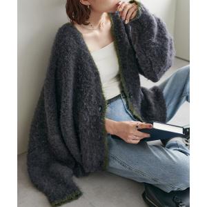 カーディガン 「新色追加!/WEB限定」MIXブークレシャギー配色Vネックカーディガン レディース