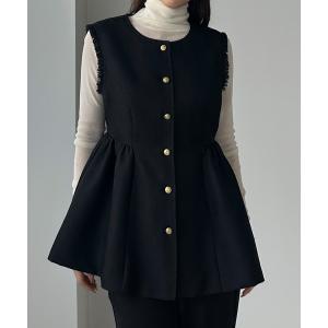 ベスト ジレ ゴールドボタンペプラムフリンジベスト レディース