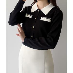 カーディガン バイカラーゴールドボタンニットカーディガン レディース