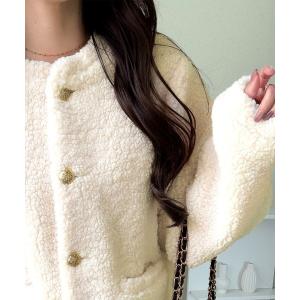 ブルゾン アウター 「mily bilet」リッチ感漂うゴールド釦×ふんわりボアで、羽織るだけで華やかに。エンブレムボタン使いボアジャケット レディー