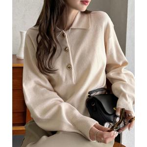 ニット セーター 「Eclat one」ゴールドボタン ニット ポロシャツ レディース