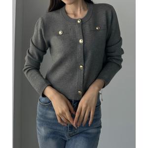 カーディガン ゴールドボタンニットカーディガン レディース