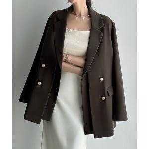 ジャケット テーラードジャケット レイヤードゴールドボタンテーラードジャケット(ゆったりシルエット) レディース