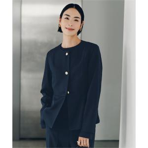 ジャケット ノーカラージャケット 美シルエットゴールド釦ペプラムジャケット レディース