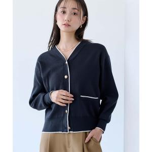 カーディガン ゴールドボタン裏配色ニットジャケットカーディガン レディース