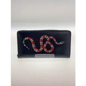 GUCCI◆長サイフ_スネークプリント/レザー/BLK/メンズ