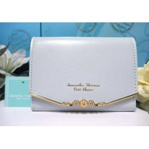 送料無料 サマンサタバサ ロゴ入 フラワー バー 牛革 マルチケース パスケース コインケース 小銭入 カード入 ミニ財布 薄青 未使用 タグ 箱付 包装無料
