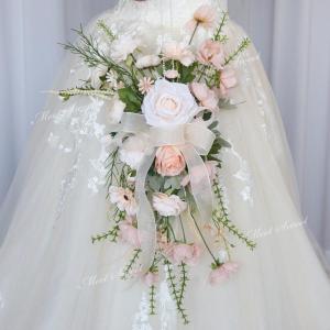 ウェディングブーケ ブートニア リストブーケ ブライダルブーケ キャスケードブーケ ウエディングブーケ 花嫁 ブーケ 造花 華やか 結婚式 二次会 披露宴 ピンク