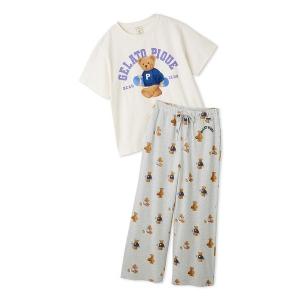 パジャマ ルームウェア 「ONLINE限定」スポーティーベアワンポイントTシャツ&総柄ロングパンツセット レディース