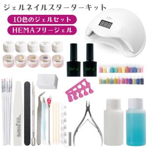 ジェルネイル スターターキット 【選べる10色セット】 ジェルネイルキット ネイルキット LEDライト 初心者 ジェルネイルセット ギフト コネクトジェル